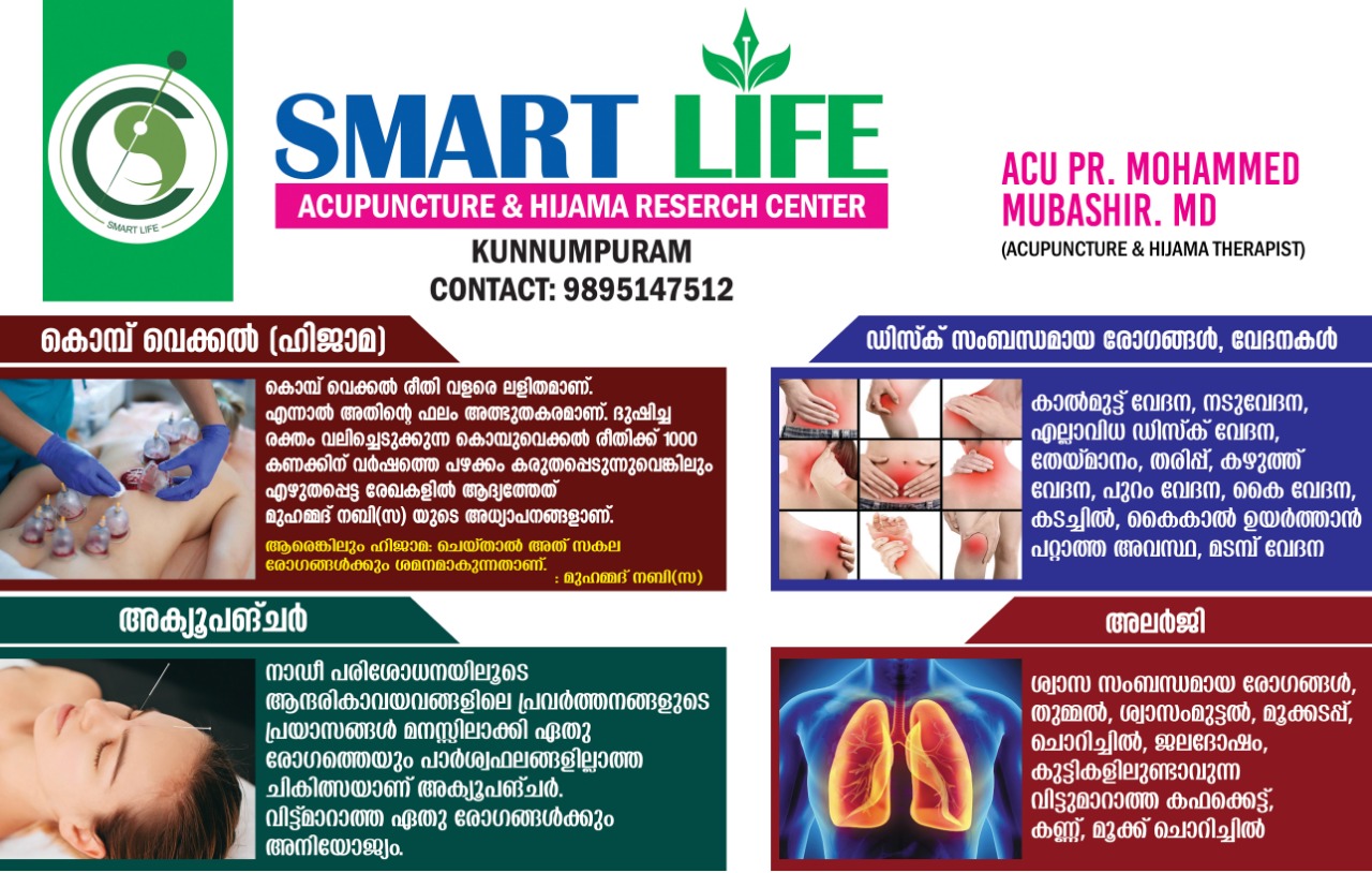 Smart Life | Acupuncture & Hijama Research Centre | Kunnumpuram | 9895 147 512 |